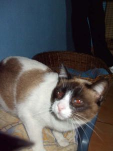 da seine frühere Besitzerin ihn (und ihre weiteren 15 Katzen und 6 Hunde) aus