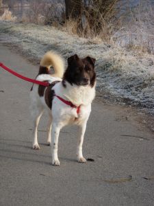 Luna ist eine Spitz-Mischlingshündin und hat eine Schulterhöhe von ca. 45 cm.