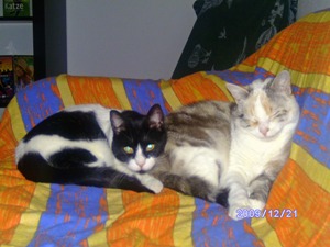 weiteren Katzen bei ihrer Pflegemama in Heidelberg. Die kleine schwarz-weiße Katze ist total lieb und spielt gerne (Kugelspiel, Fellmäuse
